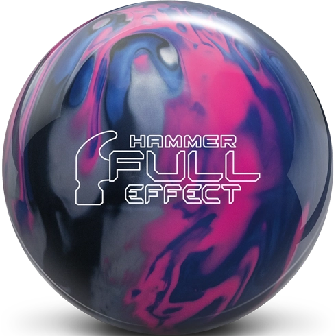 Der Hammer Full Effect ist die jüngste Erweiterung der erfolgreichen Effect-Linie von Hammer Bowling und wurde am 19. März 2026 veröffentlicht. Optisch präsentiert er sich in einem markanten Farbmix aus Blau, Pink und Silber – eine Farbgebung, die das Auge sofort anspricht und typisch für die Effect-Serie ist. Im Kern des Full Effect arbeitet der bewährte asymmetrische Huntsman-Kern, der bereits in den Vorgängermodellen der Effect-Reihe seine Stärken unter Beweis gestellt hat. Der Kern verfügt in der 16-Pfund-Variante über ein RG von 2,483, ein Differential von 0,043 und ein intermediäres Differential (Asymmetrie) von 0,015. Die 15-Pfund-Version kommt auf RG 2,470, Differential 0,050 und intermediäres Differential 0,017; die 14-Pfund-Version auf RG 2,495, Differential 0,050 und intermediäres Differential 0,016. Als Coverstock kommt die neue HK22C²-Hybrid-Technologie zum Einsatz – eine Weiterentwicklung der bewährten HK22-Coverstocklinie von Hammer, die Traktion und Ansprechverhalten kombiniert. Die Werksoberflächenbehandlung erfolgt in drei Stufen: 500, 1000 und 1500 Siaair-Schleifpapier, abschließend mit einem Factory Compound poliert. Diese Kombination verleiht dem Full Effect eine glänzende, reaktionsfreudige Oberfläche, die für die entsprechende Reaktionscharakteristik verantwortlich ist. Der Ball ist in den Gewichtsklassen 12 bis 16 Pfund erhältlich und ist für mittlere bis schwere Ölbedingungen ausgelegt.